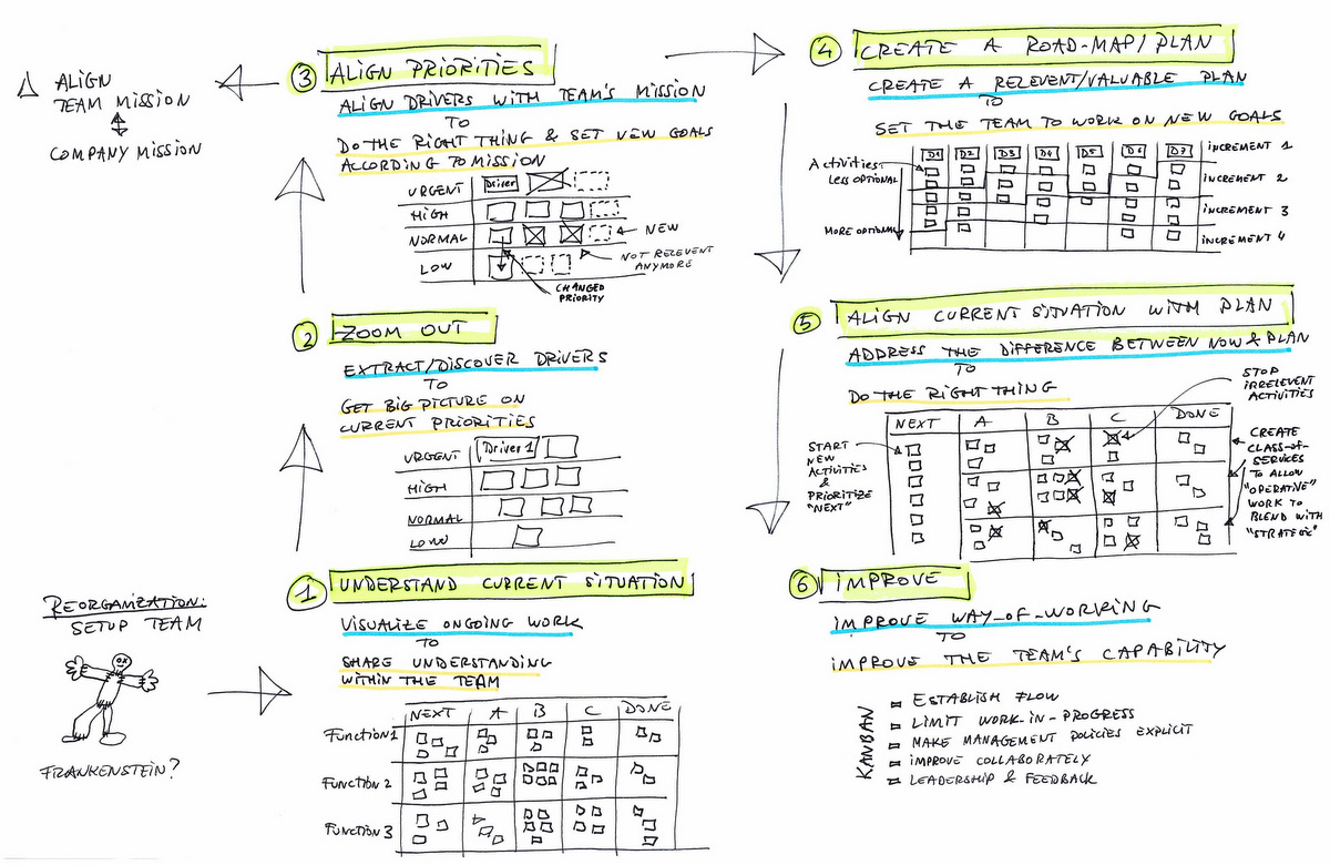 - Make what drives the work explicit (the “drivers“) to get a overall picture of the current priorities (which are yet still very much tainted by the “old” functions).